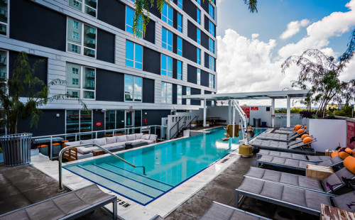 This student accommodation offers facilities such as fully-furnished, washer & dryer, inclusive utilities, cable & internet included, pet-friendly, rooftop pool & lounge, grilling stations, on-site gym, free tanning, a cyber cafe, 24/7 package pickup, parking, controlled access building, on-site management, bike storage, study rooms, and 24/7 emergency maintenance.
